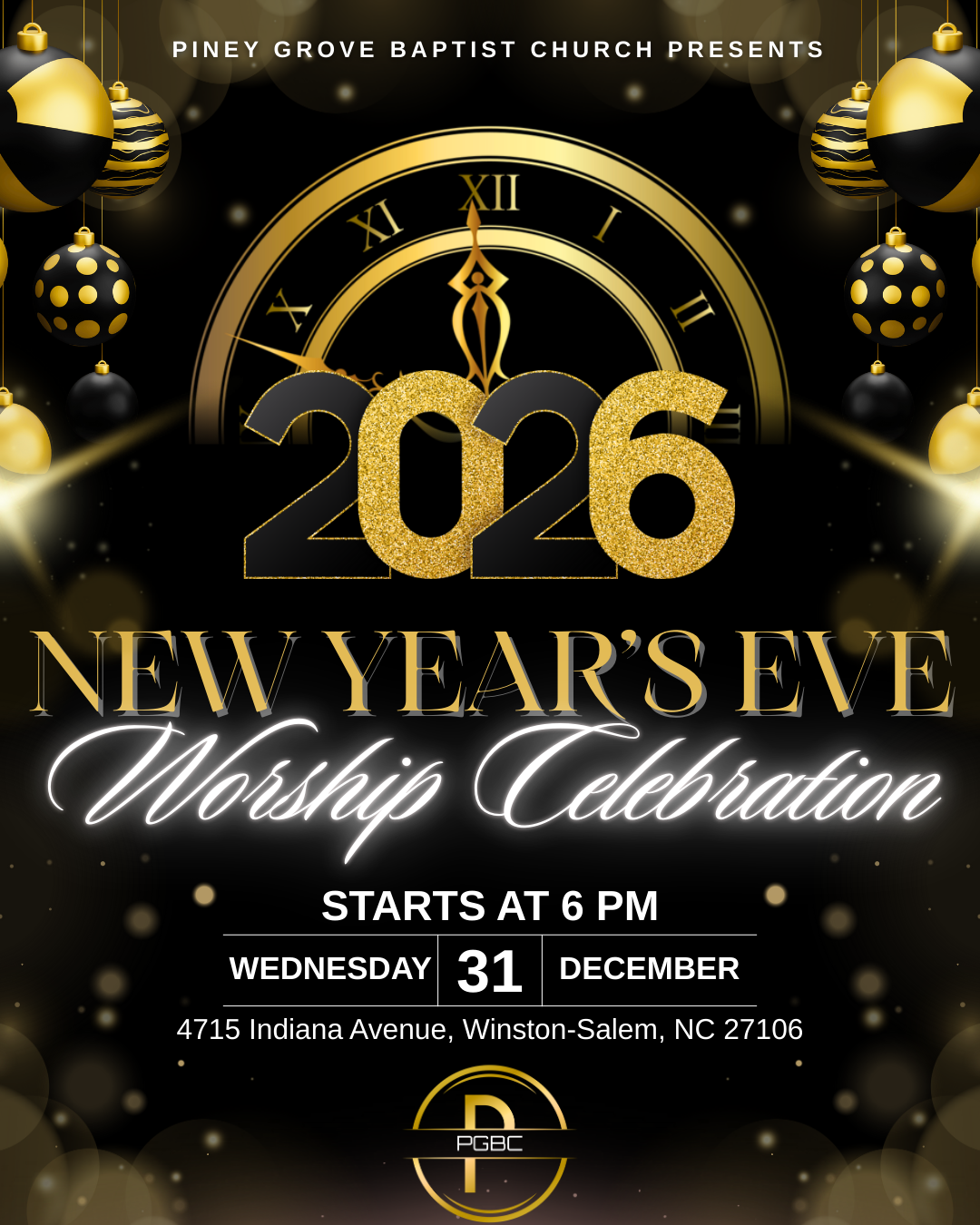 Join us as we celebrate all that God has done in 2025 and all that He is go ...PGBC New Year's Eve Worship CelebrationWednesday, December 31, 2025, 6:00 PM - 8:00 PM